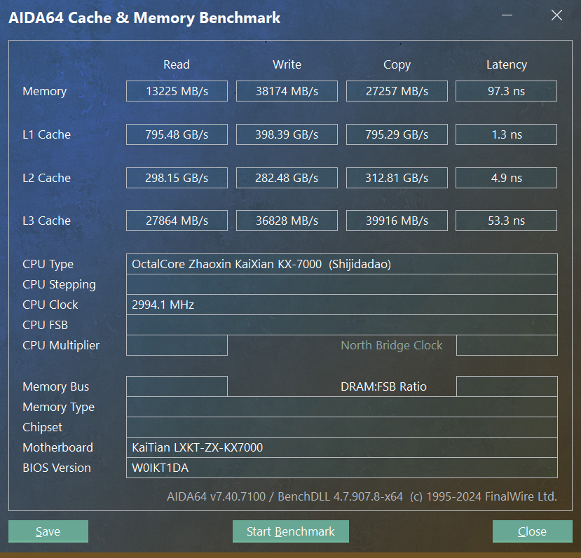 Пропускная способность кэш-памяти процессора KaiXian KX-7000 по сравнению с даже старыми Ryzen и Core очень низка. Выбранные процессоры AMD имеют в 1,7-2,3 раза более быстрый кэш первого уровня, L1 у Core он вообще более чем вчетверо быстрее, и это очередное катастрофическое отставание. Кэш второго уровня Zhaoxin также вдвое-втрое медленнее, чем у условных конкурентов в виде процессоров Core и Ryzen многолетней давности.