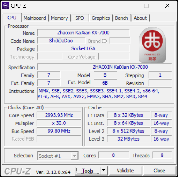 Тестовую систему и сам процессор мы уже максимально подробно рассмотрели в предыдущей части материала с тестами в Linux, так что нет особого смысла на этом останавливаться еще раз. Внешне KaiXian KX-7000 выглядит как процессоры Intel Core предыдущих поколений, использующие разъем LGA 1700, что позволило компании Zhaoxin сэкономить на разработке системных плат и систем охлаждения для их платформы: