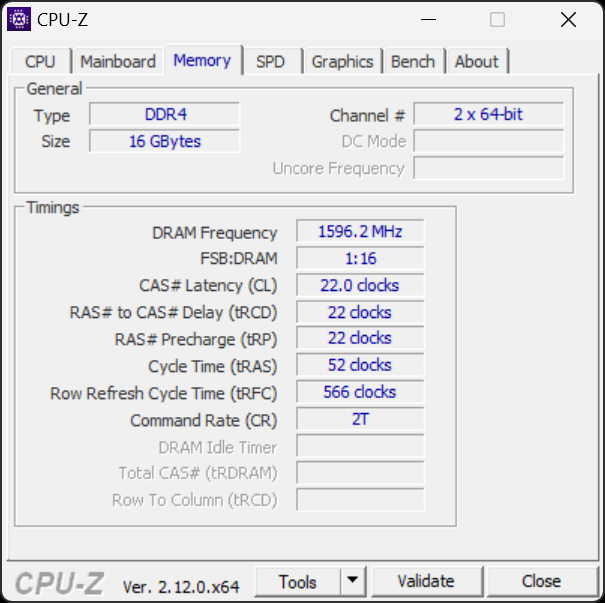 Модулей памяти CXMT CXMQ3A8MA1GU6-CJ1-A в системе установлено два, они работают в двухканальном режиме DDR4-3200 — скорость передачи данных из памяти по умолчанию зафиксирована на уровне 3200 МТ/с, и никаких настроек в BIOS нет. Также установлен твердотельный NVMe-накопитель Biwin AP860 512 ГБ, и еще один NVMe-накопитель можно установить в дополнительный разъем M.2 при необходимости — и мы как раз использовали второй накопитель Solidigm P41 Plus для дополнительных тестов в Windows. Системная плата дополнительно предлагает три порта SATA 3.0, все из которых свободны. Вот данные CPU-Z об установленной памяти, она не имеет предустановленных XMP-профилей, только JEDEC, и стандартно работает на частотах до DDR4-3200 со следующими таймингами: