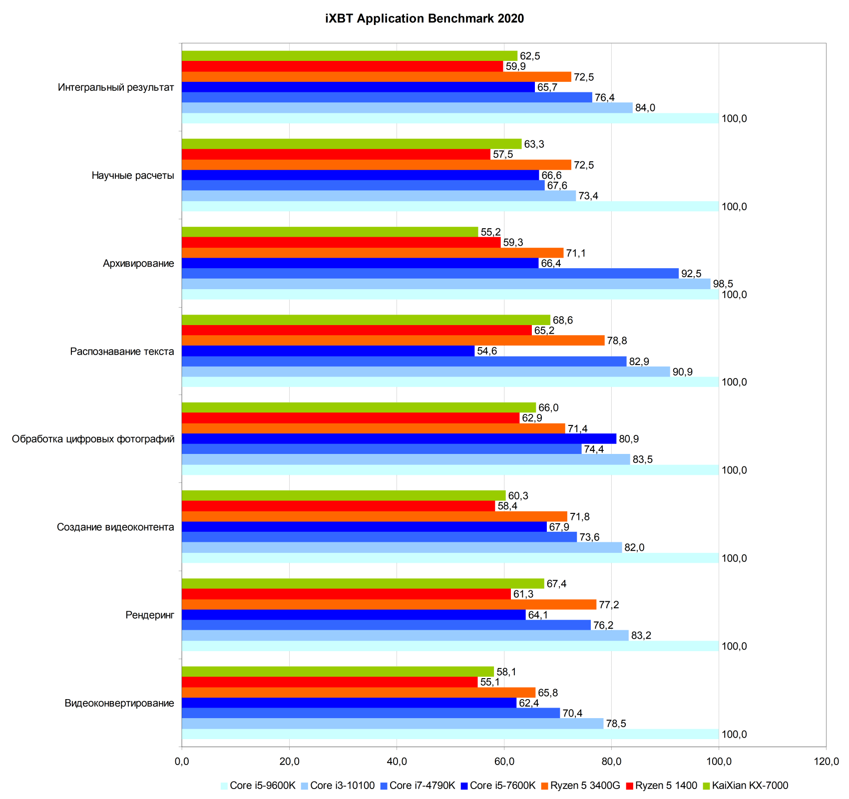 Конкурентов для китайского x86-совместимого процессора подобрать оказалось непросто в очередной раз. В идеале его нужно сравнивать с чем-то вроде Intel Core i3-N305, или даже более старым N100, но под рукой таких систем не оказалось, а из ранее протестированных процессоров по текущей методике самыми слабыми были такие модели, как Core i5-11600K, а также Ryzen 5 8500G с Ryzen 5 7500F, вот с ними и пришлось сравнивать, хотя и сразу было понятно, что это более мощные решения. Но слабых процессоров, как и чего-то вроде Core i3-10100, у нас просто давно нет в наличии. Но по методике 2020 года мы тестировали и куда менее мощные CPU, поэтому в соответствующем разделе сравним KaiXian KX-7000 также и с Core i3-10100, Core i5-7600K, Ryzen 5 1400, Ryzen 5 3400G, и другими западными решениями.