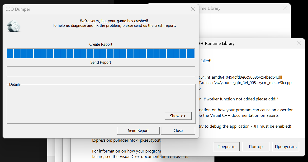 - Chernobylite — DX12-версия игры начинает загружаться, но до меню не доходит и зависает, а DX11-версия грузится до меню, но затем вылетает почти сразу же.