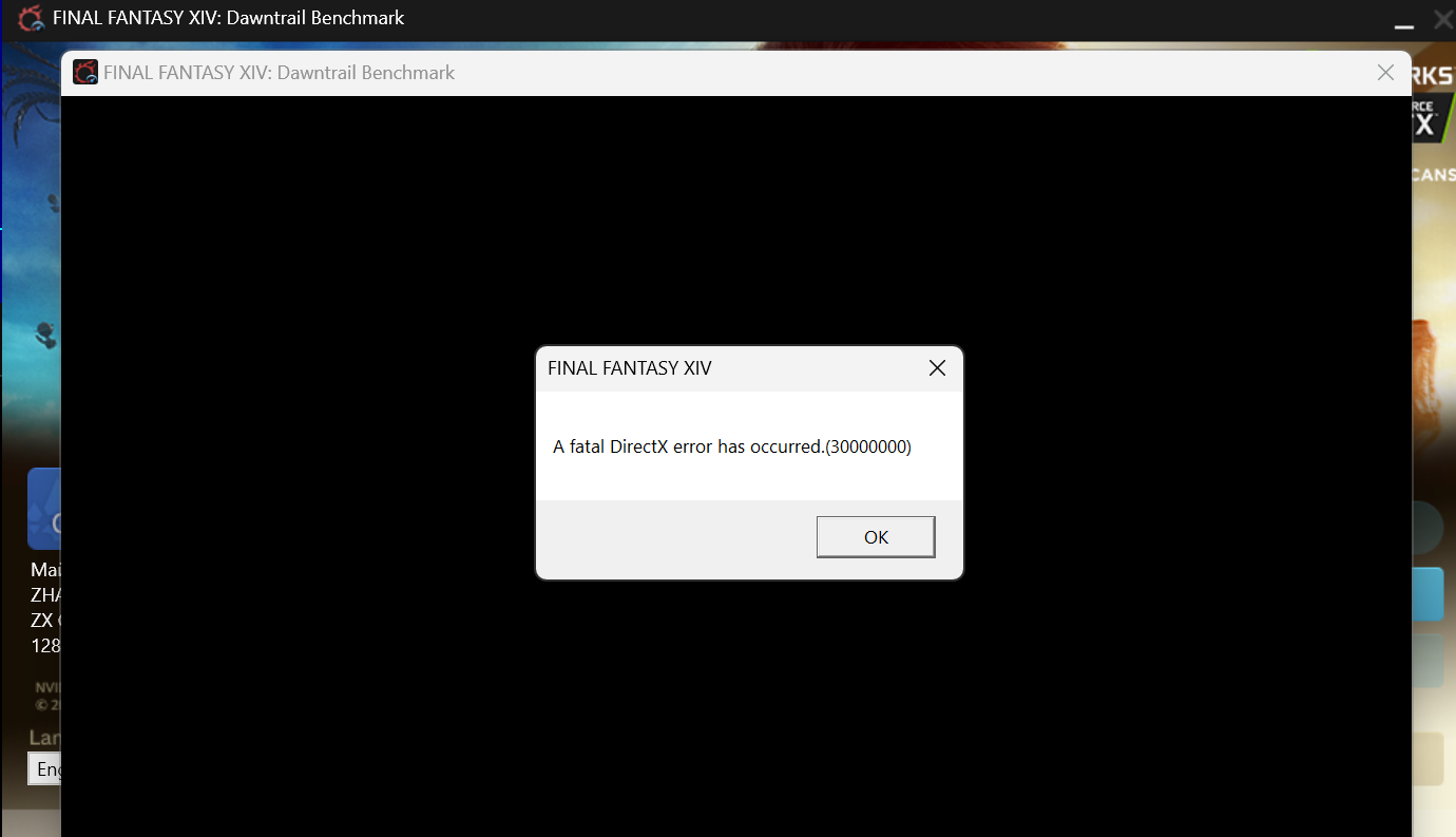 - Final Fantasy XIV бенчмарк — выдает ошибку сразу при запуске.
