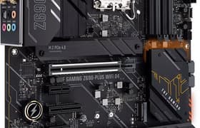 Материнская плата Asus TUF Gaming Z690-Plus WiFi D4 представляет собой игровое решение из средней линейки компании, однако ценник у таких моделей был высоковат даже до февральских событий. TUF Gaming — серия, скорее, без излишеств и с упором на очень качественную элементную базу и улучшенную защиту. Плата отличается тем, что работает не с новомодной памятью DDR5, а со старой доброй DDR4, обеспечивая хорошую преемственность при апгрейде ПК. У этой модели 15 портов USB разных видов (включая 1 USB 3.2 Gen2×2 и 3 USB 3.2 Gen2), 2 слота PCIe х16, 2 слота PCIe x1, 1 слот PCIe x4, 4 слота M.2, 4 порта SATA и 7 разъемов для вентиляторов. В принципе, для среднего уровня — очень достойная поддержка периферии. Также стоит отметить наличие двух сетевых контроллеров, проводного и беспроводного.