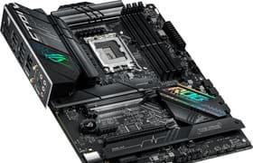 Материнская плата Asus ROG Strix Z690-F Gaming WiFi относится к семейству ROG Strix, это игровое решение среднего уровня с ценой около 40 тысяч рублей. У платы 17 портов USB разных видов (включая 2 USB 3.2 Gen2×2), 2 слота PCIe х16 (в том числе один PCIe х16 5.0), 4 слота M.2, 6 портов SATA и 8 разъемов для вентиляторов. Плата имеет грамотную систему охлаждения каждого потенциально греющегося элемента, включая накопители в слотах M.2. Сетевые возможности включают быстрый проводной контроллер 2,5 Гбит/с и один самый современный беспроводной. В числе плюсов платы можно упомянуть неплохую подсветку. Отметим и улучшенный аудиокодек Realtek ALC4080.