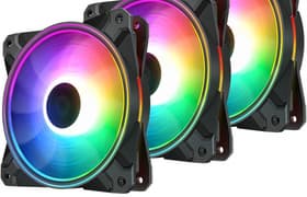 Вентиляторы Deepcool CF 120 Plus из данного комплекта по соотношению производительности и шума занимают позицию, близкую к лидерам среди протестированных по текущей методике моделей. При этом они немного лучше работают в условиях низкого сопротивления воздушному потоку. В целом вентиляторы получились весьма универсальные, они могут работать тихо, сохраняя достаточно высокую производительность, или на высоких оборотах, создавая довольно высокое давление и поток. Особенностью Deepcool CF 120 Plus являются две зоны подсветки с 18 независимо управляемыми RGB-светодиодами. Управлять работой подсветки можно как с помощью прилагаемого кнопочного контроллера, так и штатными средствами материнской платы или другого контроллера, оснащенного стандартным трехконтактным разъемом для адресуемой подсветки. Если отключить центральную зону, то подсветка будет совсем неназойливой.
