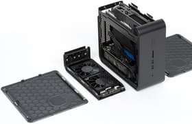 У нас осталось впечатление, что если и рассматривать NUC 9 Extreme Compute Element в качестве базы для игрового компьютера, то точно не в стандартном корпусе. Последний именно что допускает установку дискретной видеокарты — но далеко не всякой. Фактически выбор сводится к моделям, немного расширяющим игровые возможности компьютера по сравнению с вариантом использования интегрированной графики, но позволяющим поиграть лишь в несложные игры. Для более серьезных игр (и то в «щадящих» режимах) придется приобретать модели с повышенным уровнем шума: в компактном исполнении даже GeForce GTX 1650 Super «умеют» вылезать за 40 дБА. В Cooler Master MasterCase NC100 же помещаются более мощные и тихие (одновременно!) видеокарты, так что отличие тут качественное, а не количественное. Правда, габариты такой системы сопоставимы уже с некоторыми решениями на базе Mini-ITX, но это все еще сегмент компактных решений. Зато платить по сравнению с «родными» NUC приходится даже немного меньше.