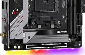 ASRock B550 Phantom Gaming ITX/ax — материнская плата на среднебюджетном чипсете, обладающая кучей достоинств. У нее отличная система питания, обеспечивающая авторазгон даже таких флагманских процессоров, как Ryzen 9 5950X. Форм-фактор Mini-ITX позволяет установить данную плату в любой самый компактный ПК, но, конечно же, накладывает и ряд ограничений: здесь всего один слот PCIe для карт расширения и только два слота под память. Впрочем, к этому покупатели плат формата Mini-ITX должны быть готовы изначально. В целом же для своих размеров функциональность у ASRock B550 Phantom Gaming ITX/ax весьма неплохая: 11 портов USB (включая 3 USB 3.2 Gen2), слот PCIe х16, два слота M.2 (один с поддержкой PCIe 4.0), 4 порта SATA. Плата имеет высокоскоростной 2,5-гигабитный проводной сетевой контроллер, а также современный беспроводной адаптер с поддержкой Wi-Fi 6 и Bluetooth 5.0.