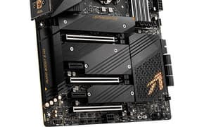MSI MEG Z590 Ace — безусловный флагман, представитель топового сегмента материнских плат, нацеленный на хардкорных геймеров-энтузиастов и просто оверклокеров-любителей. Конечно, стоимость такой платы, скорее всего, будет заоблачной. Плата предлагает 17 портов USB разных видов, в том числе с поддержкой Thunderbolt 4, 3 слота PCIe х16, 2 cлота PCIe x1, 4 слота M.2 (один из них подключен напрямую к процессору линиями PCIe 4.0), 6 портов SATA, 8 разъемов для вентиляторов, быстрый проводной сетевой контроллер 2,5 Гбит/с и один самый современный беспроводной. Система питания процессора чрезвычайно мощная, она способна обеспечить работу любых совместимых процессоров с запасом на разгон. Плата имеет отличную систему охлаждения каждого потенциально греющегося элемента, включая накопители в слотах M.2.