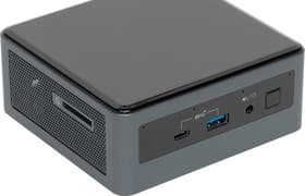 Новый топовый NUC на базе шестиядерного Core i7-10710U является интересным решением — и в своем классе высокопроизводительным. С практической точки зрения, он существенно быстрее младших моделей, но вот сравнение с NUC предыдущих поколений куда менее однозначное. Есть изменения и во внешнем виде: в частности, на лицевой панели теперь можно обнаружить не два, а четыре микрофона, а один из USB-портов сменил исполнение на Type-C. На одну из боковых граней наконец-то вернулся полноразмерный слот SD, причем UHS-II, то есть с поддержкой скоростных режимов до 312 МБ/с. Также из значимых изменений упомянем новый беспроводной контроллер стандарта Wi-Fi 6, способный разогнаться до 2,4 Гбит/с.