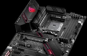 Asus ROG Strix B550-E Gaming — материнская плата на среднебюджетном чипсете, отнесенная к геймерской серии Strix бренда ROG, так что недешевая для свой ниши. Однако и с учетом этой оговорки ценник все же явно завышен. За примерно такие же деньги можно найти плату на AMD X570 — пусть с вентилятором на чипсете, но зато с PCIe 4.0 и более широкой поддержкой периферии. Тем не менее, функциональность у платы очень хорошая. Она имеет 14 портов USB разных видов, 3 слота PCIe х16, слот PCIe x4, 2 слота M.2. Система питания процессора способна обеспечить работу любых совместимых процессоров в турборежиме. Плата имеет 6 разъемов для подключения вентиляторов и помп, радиаторами оснащены все накопители в слотах M.2. Дополняют картину два сетевых контроллера: проводной 2,5-гигабитный и беспроводной, реализующий Wi-Fi 802.11ac и Bluetooth 5.0.