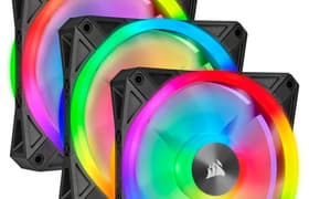 Вентиляторы Corsair QL120 RGB из данного комплекта по соотношению производительность/шум занимают среднюю позицию среди протестированных по текущей методике моделей. При этом рассматриваемые вентиляторы немного лучше работают в условиях высокого сопротивления воздушному потоку, то есть их будет уместно использовать при прокачке воздуха сквозь плотные фильтры или на радиаторах СЖО. Особенностью комплекта являются четыре кольцевые зоны подсветки с 34 независимо управляемыми RGB-светодиодами в каждом вентиляторе. С помощью ПО iCue пользователь может выбрать один из предустановленных эффектов подсветки или создавать собственные динамические и статические цветовые варианты. В целом данный набор можно рекомендовать к использованию в тех случаях, когда одной из главных целей является моддинг открытого компьютерного корпуса или корпуса с прозрачными панелями, а не, например, экстремальный разгон или обеспечение минимального уровня шума при заданной нагрузке.