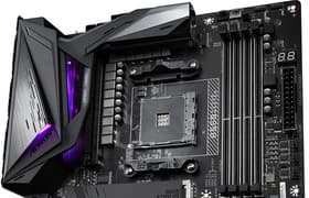 Gigabyte B550 Aorus Master — материнская плата на среднебюджетном чипсете, однако представленная под топовым брендом Aorus и недешевая. Функциональность у модели очень хорошая: 18 портов USB разных видов (включая 6 самых быстрых на сегодня), 6 портов SATA, проводной 2,5-гигабитный сетевой контроллер и беспроводной Wi-Fi 802.11ac + Bluetooth 5.0. А самое главное — уникальный набор слотов M.2. Здесь не привычные для среднебюджетных плат два слота, а три, и все подключены напрямую к процессору, а значит, при установке Ryzen 3000 они получат все преимущества шины PCIe 4.0. Однако процессоры Ryzen имеют только 20 свободных высокоскоростных портов, и 16 из них приходится на слоты PCIe и M.2, поэтому у рассматриваемой платы только один слот PCIe x16, да и тот вынужден делить ресурсы с двумя M.2. Тем не менее, плата имеет два слота PCIe x4 для карт расширения (правда, и здесь не обошлось без разделения ресурсов).