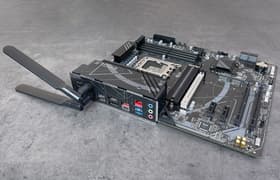 Материнская плата Asus ROG Strix X670E-I Gaming WiFi — интересный представитель топовой серии ROG с примерной стоимостью в районе 50 тысяч рублей на момент публикации обзора. Это миниатюрная модель форм-фактора Mini-ITX, предназначенная для компактных ПК, но при этом весьма навороченная плата с поддержкой разгона и многих фирменных технологий. Слоты для видеокарты и M.2-накопителя поддерживают PCIe 5.0, также есть 2 порта USB4/Thunderbolt 4 со скоростью передачи данных до 40 Гбит/с. Комплект поставки включает внешнюю антенну для беспроводного сетевого адаптера Wi-Fi 6E + Bluetooth 5.3, внешний модуль ROG Strix Hive (аудиоразъемы, регулировка громкости, дополнительные интерфейсные порты и пр.) и карту расширения ROG FPS-II (дополнительные интерфейсные порты, возможность подключить провода от передней панели до установки этой карты на плату), которые позволяют такой компактной плате иметь весьма неплохую поддержку периферийных устройств.