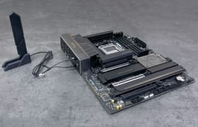 Материнская плата Asus Prime X670E-Pro WiFi из среднебюджетной серии Prime основана на флагманском чипсете AMD и имеет достаточно высокую стоимость (от 40 тысяч рублей). Это универсальная модель, без особых «наворотов», однако при этом с хорошей поддержкой периферии и процессоров последних поколений AMD Ryzen под AM5. Из особенностей платы можно упомянуть два слота PCIe x4 для периферии (один из них длинный) и 4 слота M.2 (в том числе с подключением к процессору). В дополнение к проводному сетевому контроллеру 2,5 Гбит/с здесь установлен беспроводной контроллер Wi-Fi 6E + Bluetooth 5.3. Для слотов M.2 предусмотрены радиаторы.