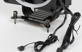 На основе этой СЖО можно создать условно бесшумный компьютер, оснащенный процессором типа Intel Core i9-13900K, если потребление процессора под максимальной нагрузкой не будет превышать 235 Вт, а температура внутри корпуса не повысится выше 44 °C, и это с ограничением в 80 °C на максимальную температуру процессора. ЖК-экран на помпе может не только украсить внутреннее пространство системного блока, но и принести пользу, помогая отслеживать текущие параметры ПК. Украшением послужит и подсветка на вентиляторах, а магнитные разъемы на них облегчат установку системы. Отметим хорошее качество изготовления, оплетку шлангов, а также вентилятор на помпе, предназначенный для охлаждения VRM и других окружающих процессор компонентов. Для управления и контроля за работой этой СЖО используется ПО Armoury Crate, имеющее весьма продвинутую функциональность.