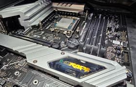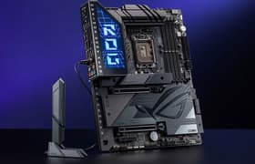 Asus ROG Maximus Z790 Dark Hero — представитель топовой серии ROG, почти самая старшая в ней модель для платформы Intel LGA1700 с примерной стоимостью в районе 75 тысяч рублей. Это очень навороченная плата, созданная для хардкорных геймеров и энтузиастов-оверклокеров. У платы 21 порт USB, включая 8 USB 3.2 Gen2 (два из них — Thunderbolt 4) и 1 USB 3.2 Gen2×2, 3 слота PCIe х16 (два из которых подключены к процессору 16 линиями PCIe 5.0), 5 слотов M.2 (два подключены к процессору, один из них — линиями PCIe 5.0, но если установить в него SSD, то первый слот PCIe x16 переключится в режим х8, а второй вовсе отключится), 4 порта SATA и 8 разъемов для вентиляторов. Сетевые возможности включают проводной контроллер 2,5 Гбит/с и беспроводной Wi-Fi 7/Bluetooth 5.4. Слот M.2 с интерфейсом PCIe 5.0 и самый современный беспроводной сетевой контроллер — два ключевых отличия от Asus ROG Maximus Z790 Hero.