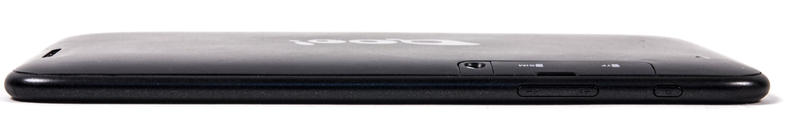 На фронтальной панели в центре находится объектив камеры. Чуть левее от него — датчик освещения. На соседней стороне — телефонный динамик. При зарядке у противоположного края загорается синий светодиод (при низком уровне заряда он начинает мигать). Ширина полей планшета позволяет свободно держать его одной рукой в любой ориентации.
