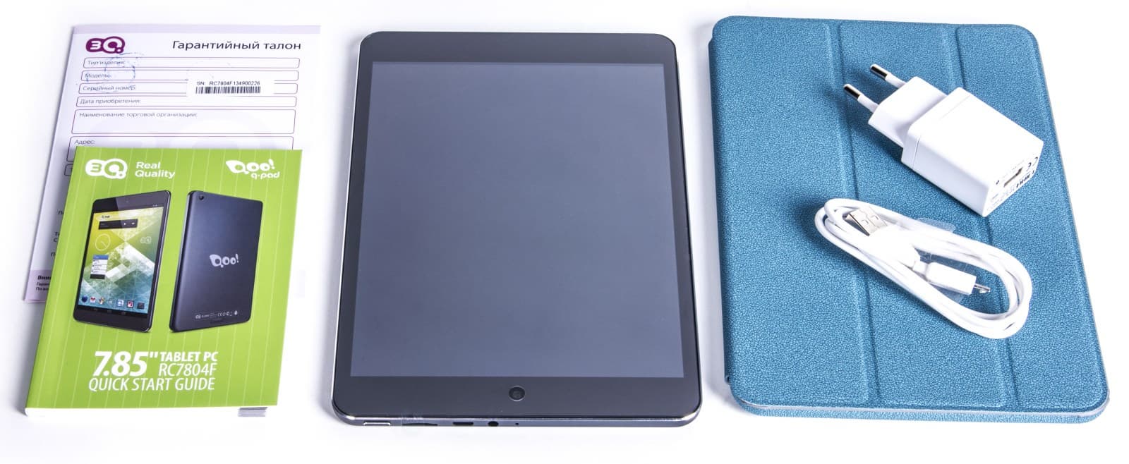 В коробке с планшетом 3Q нашлось место для инструкции, гарантийного талона, сетевого адаптера, кабеля Micro-USB и, что самое интересное, симпатичного чехла-обложки.