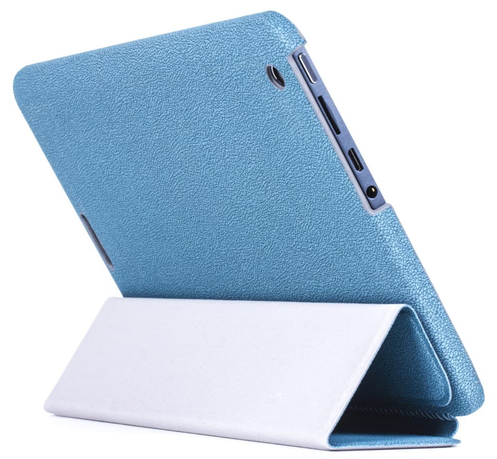 Для всех функциональных элементов планшета в обложке предусмотрены хорошо подогнанные прорези. Планшет закрепляется в чехле надежно. При необходимости его можно использовать как подставку.