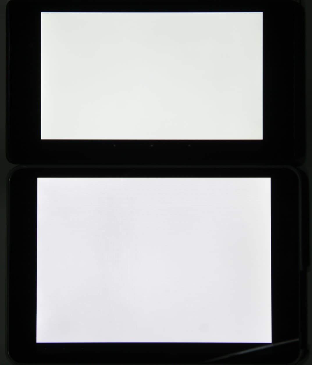 Видно, что цвета не сильно изменились у обоих планшетов, а контраст уменьшился незначительно. Затем белое поле: