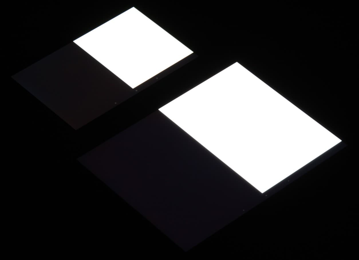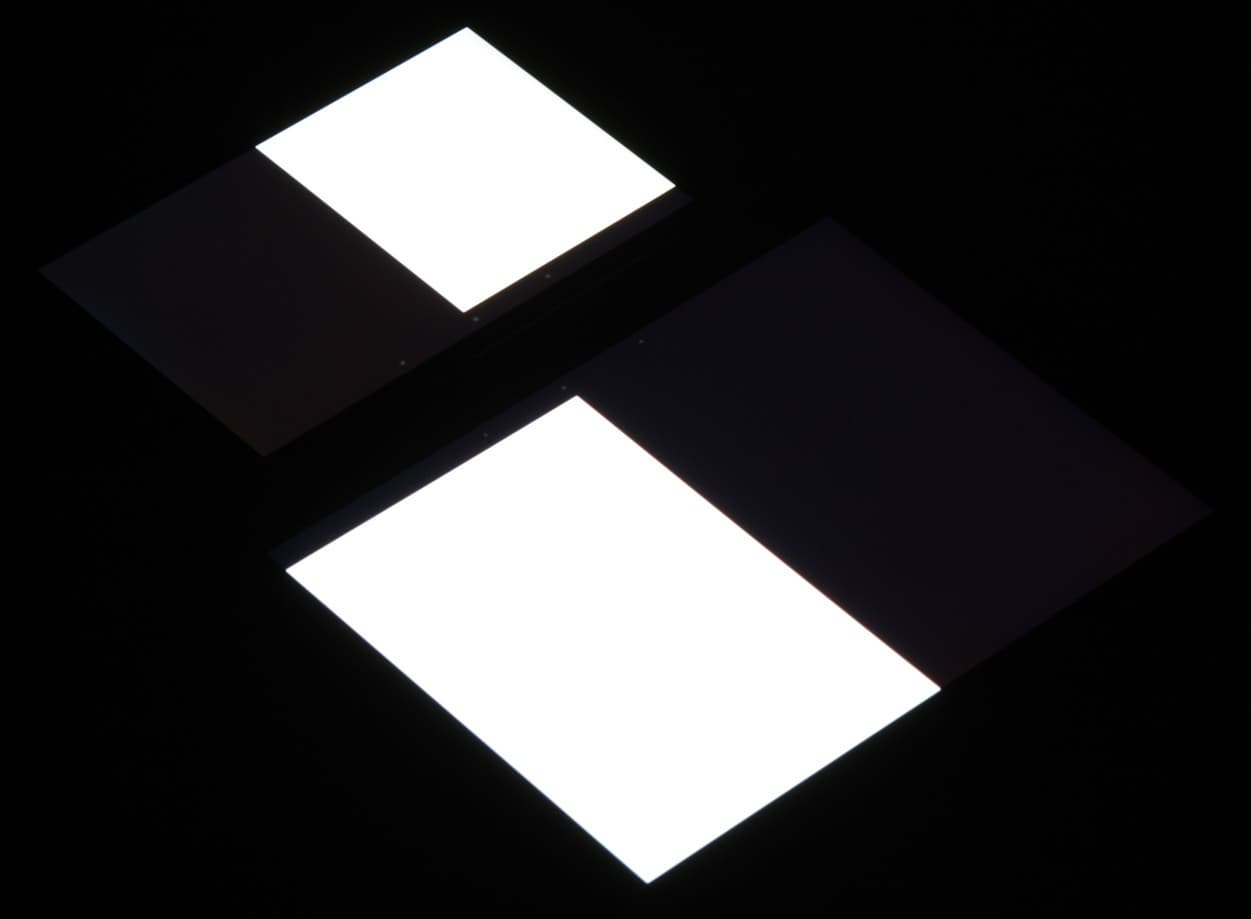 При перпендикулярном взгляде равномерность черного поля средняя, так как по краю есть несколько участков с повышенной яркостью черного: