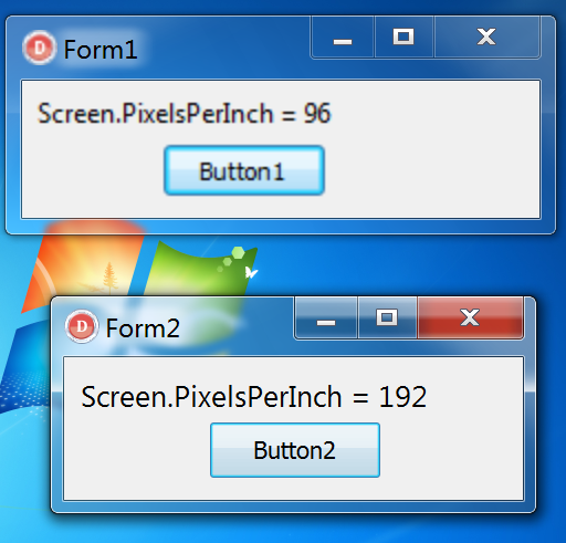 Современные версии Windows предлагают два алгоритма масштабирования: старый, который управляет масштабом системных элементов, но оставляет масштабирование собственных ресурсов приложения на его усмотрение, и новый (впервые представленный в Windows Vista), который, благодаря виртуализации dpi, позволяет сохранить интерфейс приложения в полностью оригинальном виде при любом масштабе — пусть и ценой некоторого ухудшения качества изображения.