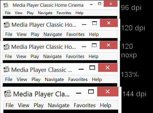 Как обычно, практика не полностью подтвердила те теоретические выкладки, которые мы привели во второй части. В частности, выяснилось, что система задействует старый механизм и при 150% (144 dpi), хотя при таком масштабе его применение уже неуместно, т. к. графические элементы и некоторые шрифты в неоптимизированных приложениях получаются слишком мелкими для нормальной работы. Это довольно серьезный огрех, и я не очень понимаю, почему масштабирование в современных версиях Windows было реализовано именно таким образом. При таком масштабе стоит использовать уже новый алгоритм, тем более что при свободном масштабировании он уже работает.