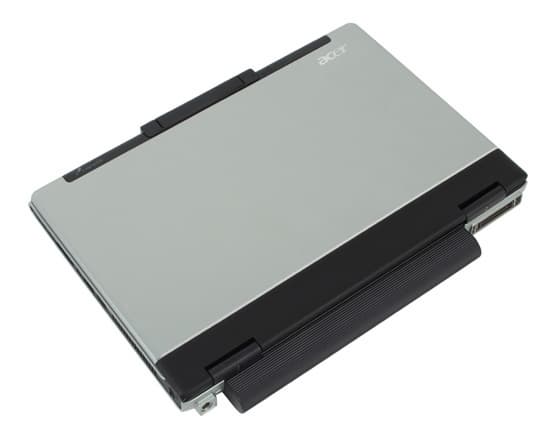 Дизайн корпуса также оставляет приятное впечатление. Отмеченное сочетание черного с серебристо-серым создает достаточно симпатичный вид. Единственное — не нравится традиционное решение Acer с закругленной передней гранью, но это вопрос личных вкусовых пристрастий. Боковые грани выполнены в черном цвете с серебристой окантовкой, что придает ноутбуку привлекательный вид и визуально делает бок более тонким.
