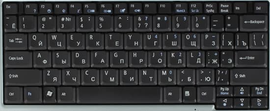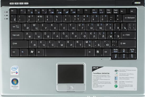 Раскладка клавиатуры у тестируемого ноутбука представляет собой компромиссный вариант. Левая часть выполнена вполне удобно даже при условии слепой печати. Отдельно стоит отметить, что Ctrl находится в углу, что предпочтительнее при слепой печати и более точно соответствует настольной раскладке. В правой части единственная претензия — ужаты по две клавиши в среднем и верхнем ряду, и одна клавиша в нижнем. При слепой печати это доставляет некоторые неудобства, но и в том случае, если вы смотрите на клавиатуру при печати, попасть в узкие клавиши все равно сложнее. Что касается надкурсорного блока ins/home, то, на наш взгляд, предложенное решение близко к оптимальному: ins/del унесены в верхнюю часть клавиатуры, del находится в углу, где его очень легко найти при редактировании. Pgup, pgdn — стоят рядом с курсором, ими удобно пользоваться при чтении, так как эти клавиши рядом с курсором (хотя бывают и ложные нажатия, когда вместо клавиш «вправо» или «влево» попадаешь на них из-за того, что эти клавиши вдвое стандартного размера по вертикали). Home и end реализованы в виде сочетаний с Fn, но при этих габаритах клавиатуры другое решение придумать достаточно сложно.