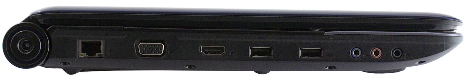 Само по себе расположение портов не вызывает нареканий. А по «ассортименту» обращает на себя внимание два видеовыхода: HDMI и VGA (несмотря на наличие двух видеоадаптеров использовать одновременно в режиме расширенного рабочего стола можно только два приемника видеосигнала, например, один из внешних в паре с собственным монитором ноутбука или только два внешних монитора). Те кто еще помнят, что когда-то подключение к интернету состояло в дозвоне к провайдеру через обычную телефонную сеть с помощью аналогового модема, смогут использовать такое подключение, благодаря наличию встроенного модема.