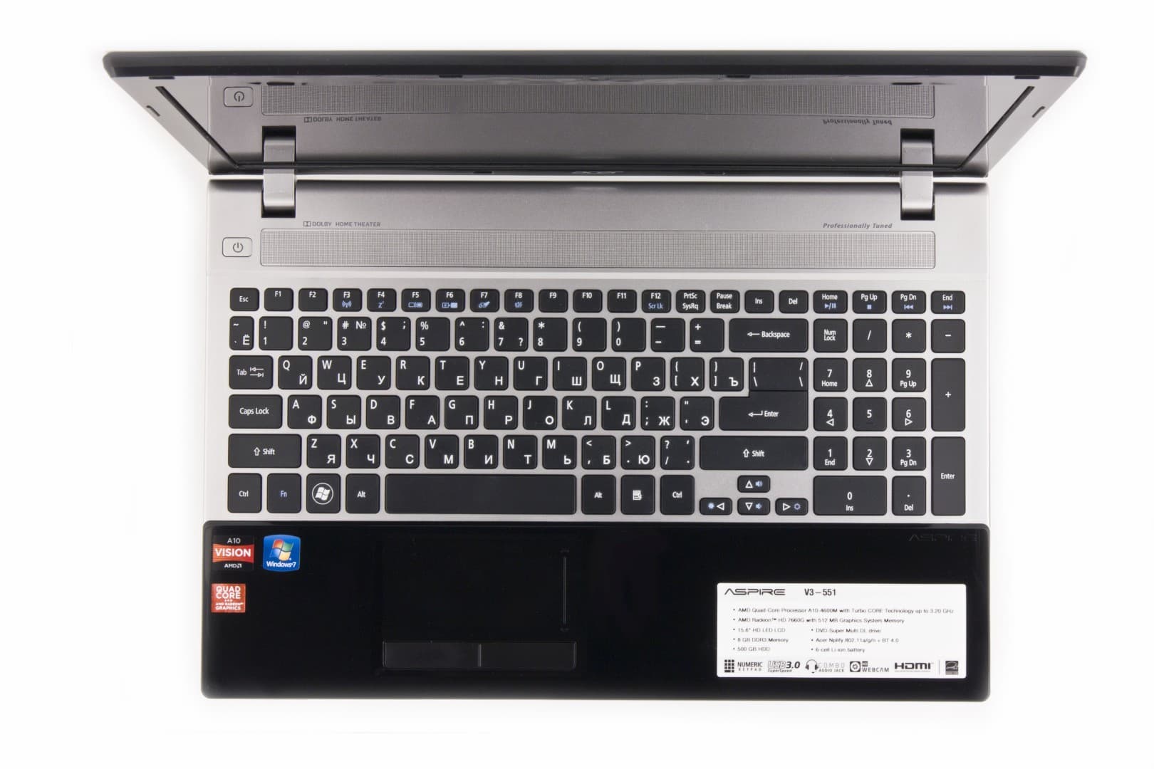 Весит ноутбук не больше, но и не меньше других 15-дюймовых моделей: около 2,6 кг. Толщина 3,3 см не позволяет назвать Acer Aspire V3-551 тонким, но в этом свой плюс — есть возможность разместить в корпусе достаточно эффективную и малошумную систему охлаждения.