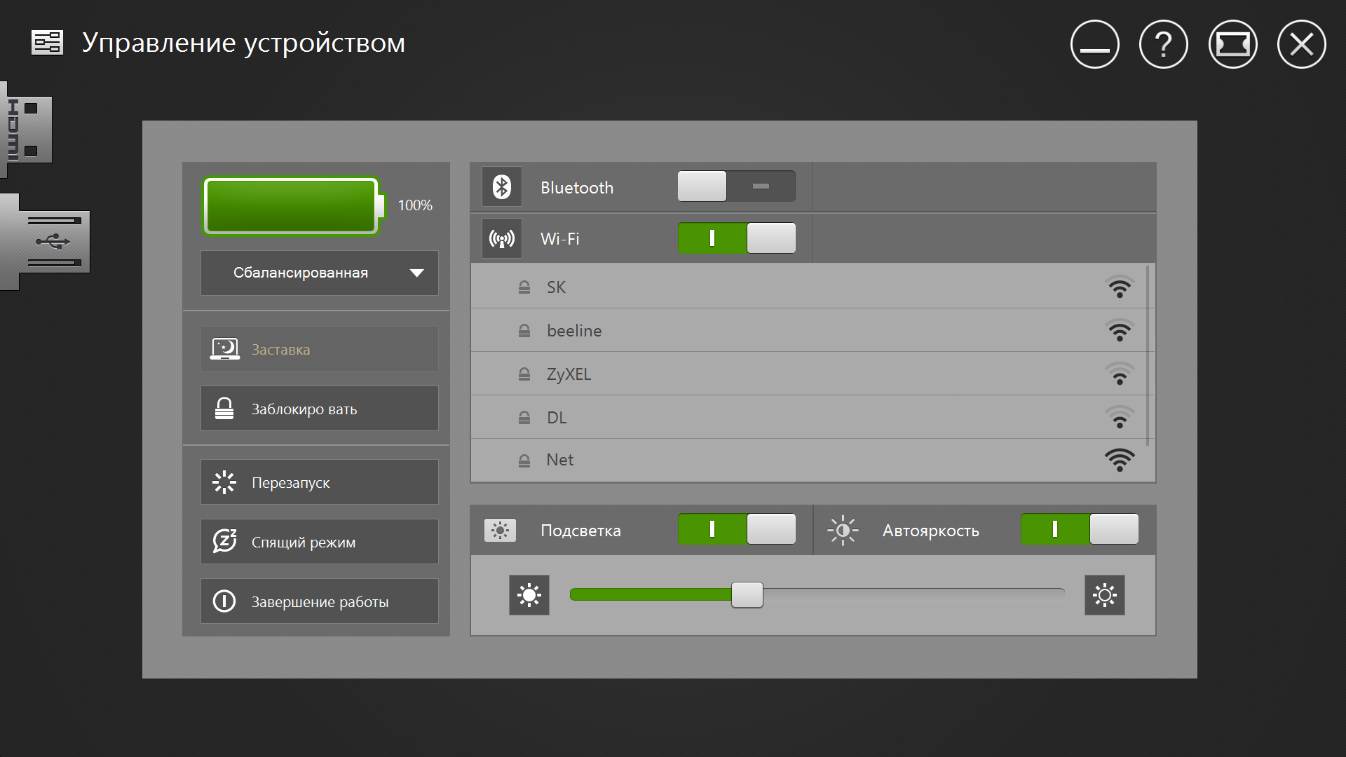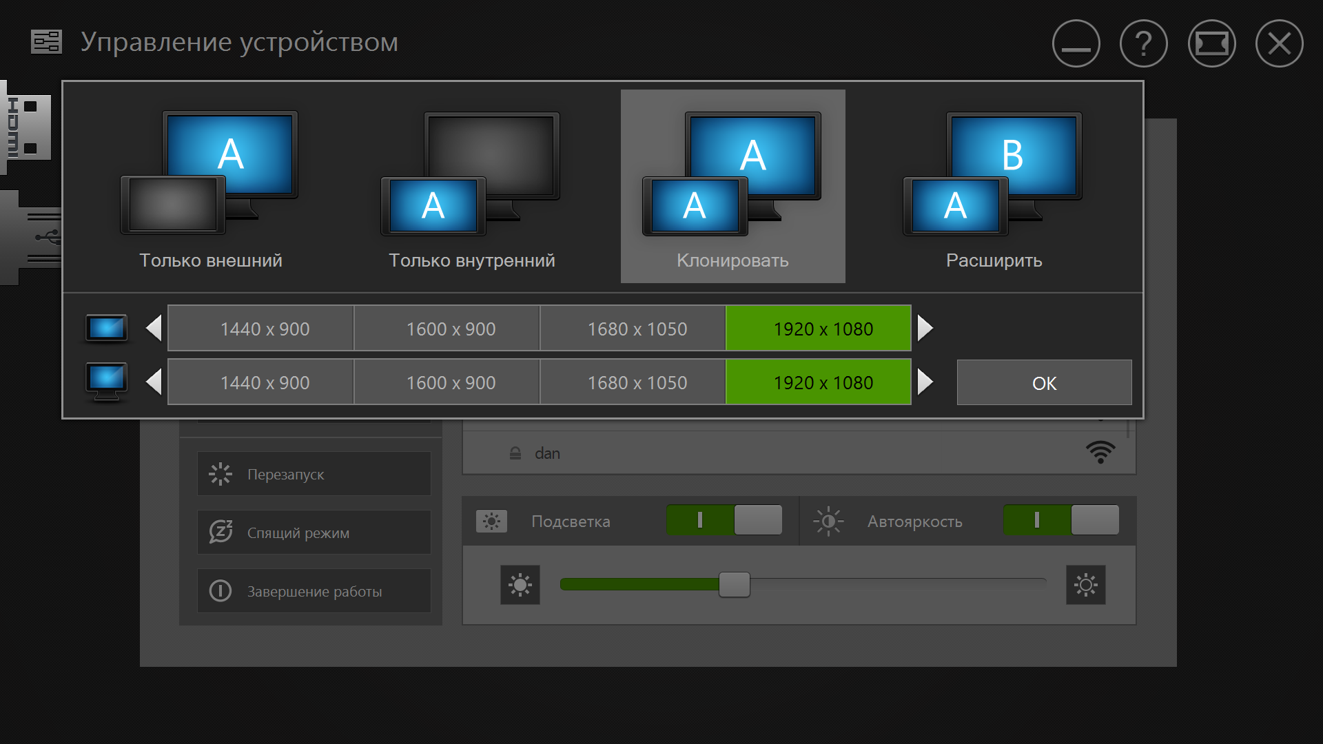 В некоторых случаях будет полезна возможность вывода изображения на большой монитор или проектор через интерфейс HDMI. Отметим, что есть аппаратная возможность вывода через него цифрового звука, включая HD-форматы. Но для этого придется искать и настраивать дополнительный медиаплеер и/или кодеки, штатные программы такого не умеют.