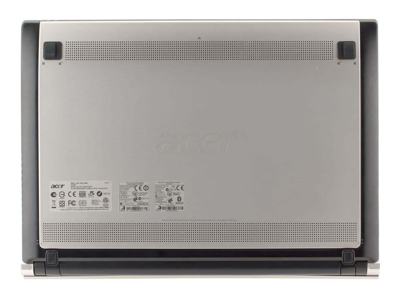 Внешне Iconia смотрится солидно. В первую очередь, за счет металлической крышки красиво подобранного теплого оттенка. Крышка плоская, по краю идет прорезиненная полоска, она оживляет внешний вид и делает работу с ноутбуком удобнее: за нее берешься пальцами, закрывая крышку, и они не скользят на резиновой поверхности. Из металла и нижняя крышка, остальные части сделаны из черного пластика.