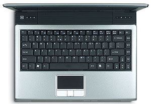 Кнопка включения и индикаторы Lock`ов и активности устройств хранения информации расположены над клавиатурой слева, кнопки быстрого вызова приложений — справа (по умолчанию — почтовый клиент, браузер, вызов утилиты Acer eManager и вызов утилиты Launch Manager). При этом индикаторы и кнопки выполнены в одном стиле. Смотрится замечательно, но клавиши получились мелковаты. Кнопка включения питания тоже небольшая, но пользоваться ей, на удивление, удобно.