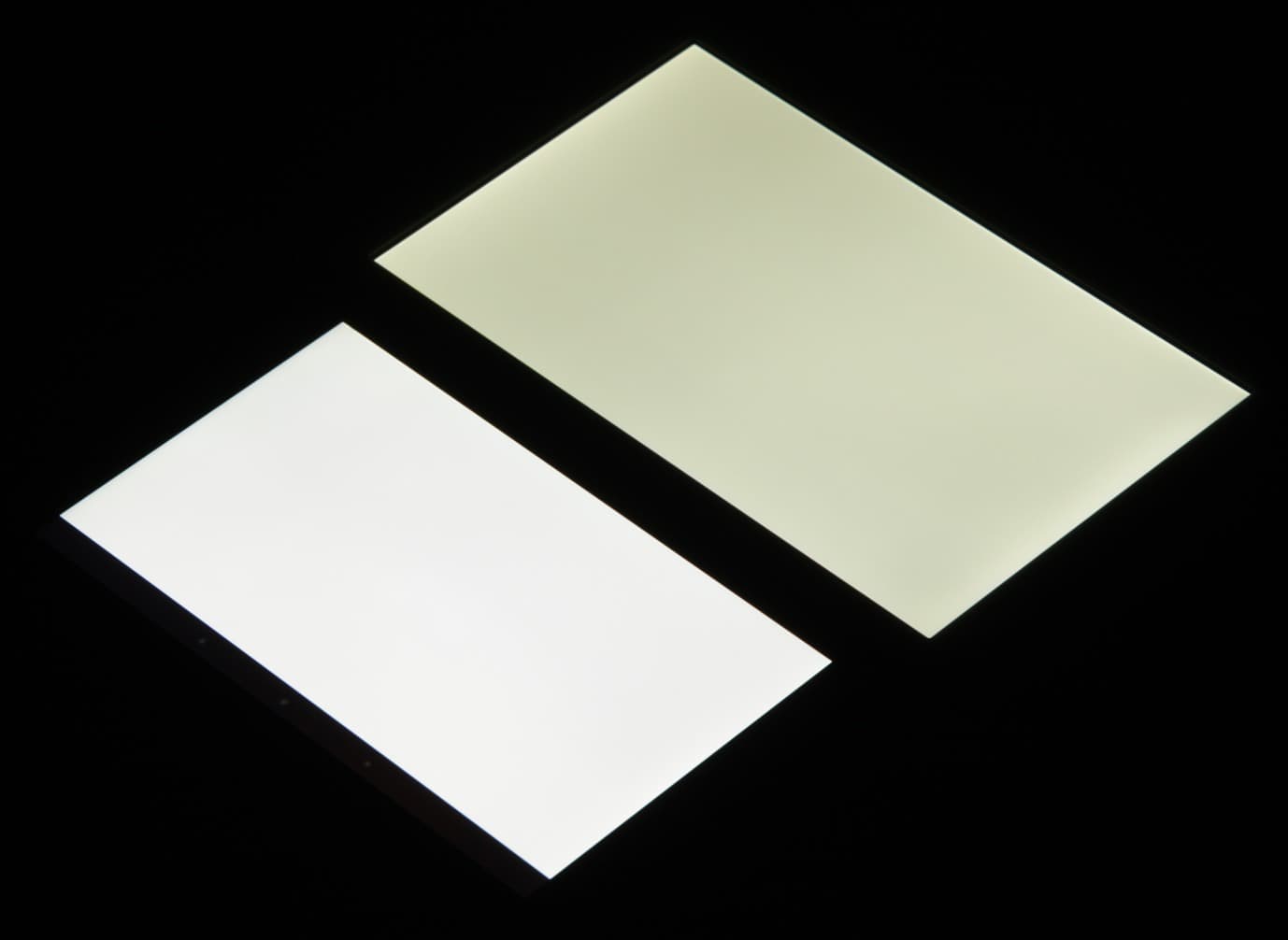 Яркость под углом у обоих планшетов заметно уменьшилась (как минимум в 5 раз, исходя из разницы в выдержке), но в случае Acer Iconia Tab 8 W яркость экрана под этим углом немного ниже. Черное поле при отклонении по диагонали высветляется сильно и приобретает фиолетовый или желтоватый оттенок. Фотография с Nexus 7 для сравнения это показывает (яркость белых участков в перпендикулярном направлении у обоих планшетов примерно одинаковая!):