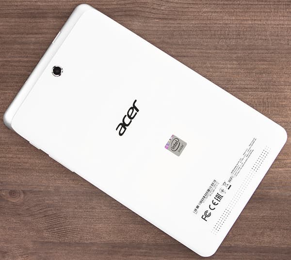 По центру сверху тыльной стороны планшета располагается камера, а в центре — логотип компании Acer.