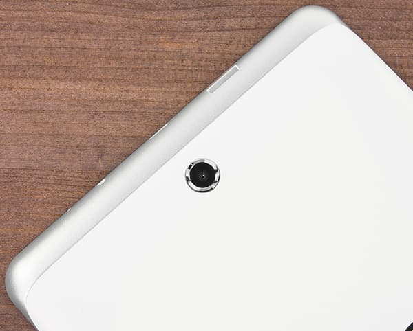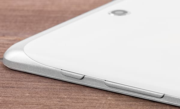 Тыльная сторона планшета выполнена из пластика белого цвета. Поверхность корпуса рифленая и, что немаловажно, устойчивая к появлению отпечатков пальцев.