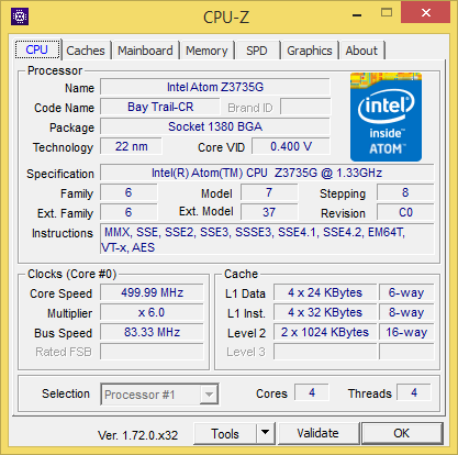 | Процессор | Intel Atom Z3735G (Bay Trail) |