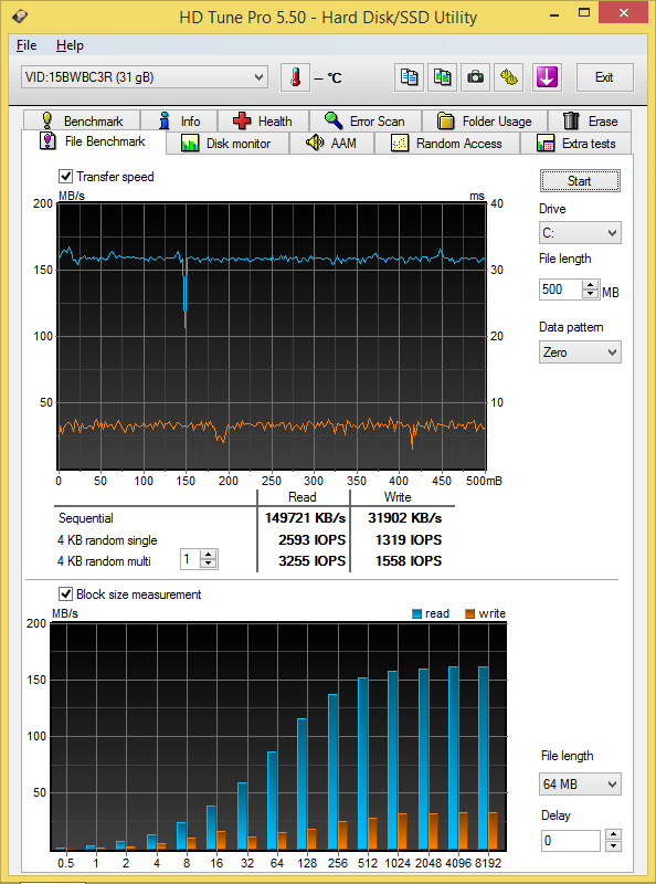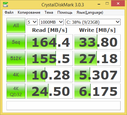 Примерно аналогичные результаты выдают утилиты CrystalDiskMark 3.03 и HD-Tune Pro 5.50.