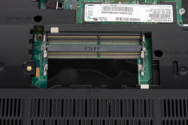 Для установки SO-DIMM-модулей памяти в ноутбуке предназначено четыре слота. Однако при частичной разборке ноутбука пользователю доступны лишь два слота.