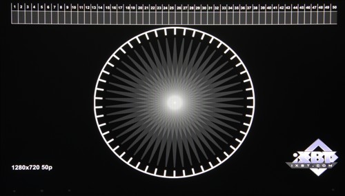 Как уже отмечалось, при воспроизведении видео плеером «4k» на подключенном по HDMI мониторе картинка видеофайлов с разрешением 1920 на 1080 пикселей выводится вписанной по ширине в область отображения монитора, но по высоте изображение чуть-чуть поджато, поэтому разрешение по горизонтали равно 1920 точек, а по вертикали оно меньше 1080. Картинка собственно видеофайла выводится только на подключенный монитор. Отображаемый на мониторе диапазон яркости в точности соответствует стандартному — в тенях и в светах отображаются все оттенки диапазона «видео». Результаты тестов вывода на монитор приведены в таблице выше в блоке «HDMI (монитор)». Видно, что все видеофайлы вплоть до 1080p с 60 кадр/с воспроизводятся с равномерным или более-менее равномерным чередованием интервалов между кадрами. Пропуск кадров есть только в случае файлов с 60 кадр/с, что, во-первых, ожидаемо, так как режим вывода — 50 кадр/с, а, во-вторых, не очень заметно для столь высокой частоты кадров. Фотография экрана монитора, приведенная ниже, демонстрирует доказательство равномерного чередования кадров без пропусков, а также небольшое искажение пропорций (круг в центре чуть поджат по вертикали) и неубираемые тени кнопочек в нижней части экрана:
