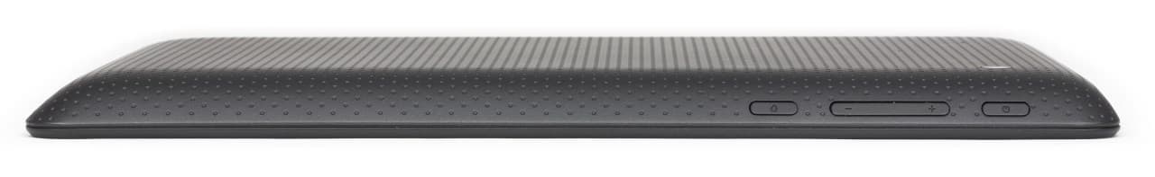 На верхней грани планшета между двумя маленькими черными и одинаковыми на ощупь кнопками выключения и возврата на основной экран находится качелька для регулировки звука. Случайные нажатия исключены — здесь и для умышленных нужно приложить некоторое усилие.