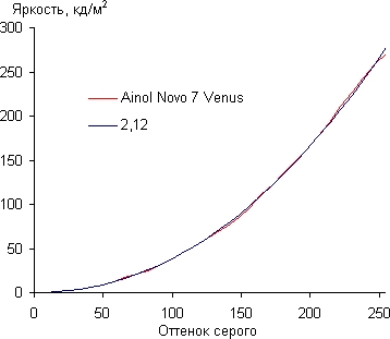 Экран имеет очень хорошие углы обзора без инвертирования оттенков и без значительного сдвига цветов даже при больших отклонениях взгляда от перпендикуляра к экрану. Черное поле при отклонении по диагонали сильно высветляется и приобретает легкий фиолетовый оттенок. При перпендикулярном взгляде равномерность черного поля хорошая, только в одном месте впритык к краю есть локальный участок с немного повышенной яркостью черного. Контрастность не самая низкая — порядка 830:1. Время отклика при переходе черный-белый-черный равно 28 мс (14 мс вкл. + 14 мс выкл.). Переход между полутонами 25% и 75% (по численному значению цвета) и обратно в сумме занимает 29 мс. Построенная по 32 точкам гамма-кривая не выявила завала ни в светах, ни в тенях, а показатель аппроксимирующей степенной функции равен 2,12, что немного ниже стандартного значения в 2,2. Реальная гамма-кривая только ближе к белому заметно отклоняется от степенной зависимости: