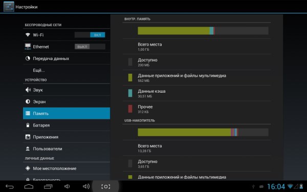 По умолчанию, с прошивкой от 7 апреля пользователю доступно 14,28 из 16 ГБ флэш-памяти устройства, а также root-права.