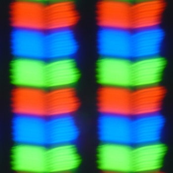 В данном планшете используется матрица типа IPS. На микрофотографии ниже видно, что субпиксели разделены на два слегка неравных домена: