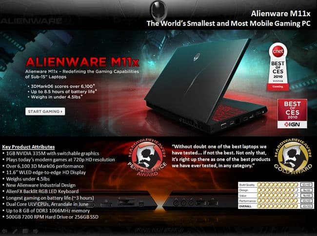 Кроме того, Alienware предлагает рынку самый маленький игровой ноутбук с диагональю всего лишь 11 дюймов. Самое впечатляющее — это, конечно, размер для игрового ноутбука. Внешне М11х выглядит как маленький, недавно вылупившийся М71х.