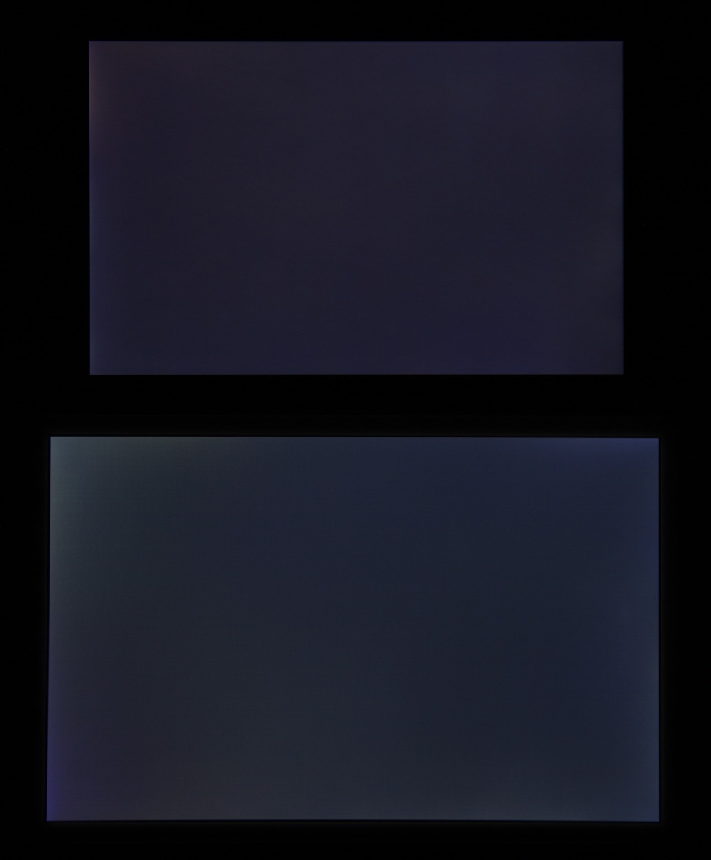 При перпендикулярном взгляде равномерность черного средняя, так как ближе к краю есть участки с повышенной яркостью черного:
