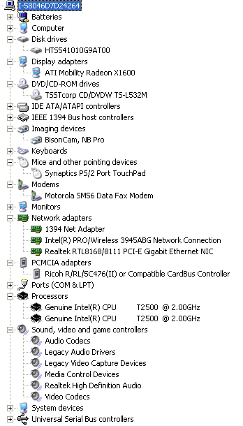 Основное отличие от тестировавшихся ранее модификаций (A6Ne, A6Km) (если, конечно, не считать основным отличием различные платформы) — появление вместо, скажем так, морально устаревшего параллельного порта цифрового выхода DVI. Аналогично модификации A6Km присутствует и ТВ-выход, а вот новомодного слота Express Card нет — в этой модификации разработчики ограничились "проверенным" слотом PCMCIA. Исчез и ИК-порт. Конкретные спецификации устройств, установленных на тестируемом экземпляре, можно увидеть на скриншоте вкладки Device Manager.
