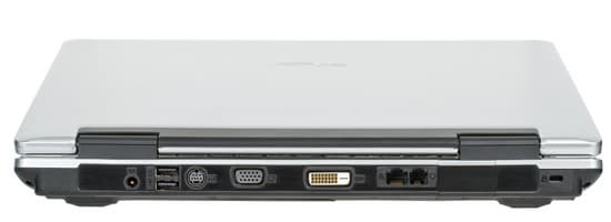 На большинстве ноутбуков задняя панель отдана под корпус батареи и, соответственно, на ней практически нет разъемов. В А8 же именно тут сосредоточена большая их часть. Слева направо — разъем питания (расположен неудобно — наощупь при открытой крышке не найдешь, он слишком далеко от края, приходится прикрывать крышку и шарить пальцем по панели, пока не найдешь разъем), два разъема USB 2.0 для периферии, семиштырьковый выход S-video, выход VGA, выход DVI. Чуть дальше — сдвоенные порты модема и сети.