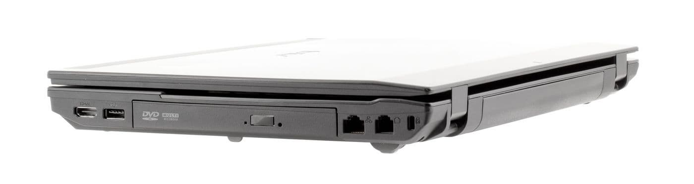 На правой грани нашего варианта ноутбука, близко к передней грани, находятся порт HDMI и еще один USB. Опять же, если пользоваться видеовыходом, кабель будет торчать из передней части ноутбука и мешать мышке. В середине грани расположен оптический привод. Ближе к дальней грани находятся разъем проводной сети, модемный разъем RJ-11 (производитель предусмотрел его для профессиональной модели, мотивируя это тем, что профессиональным пользователям он может понадобиться — впрочем, это опция) и порт для замка Кенсингтона.